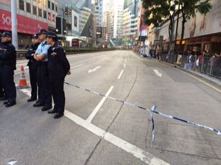 午後3時には、金鐘(アドミラルティ)の立法議事堂の占拠地が強制撤去され、周辺道路で座り込みを続ける人が