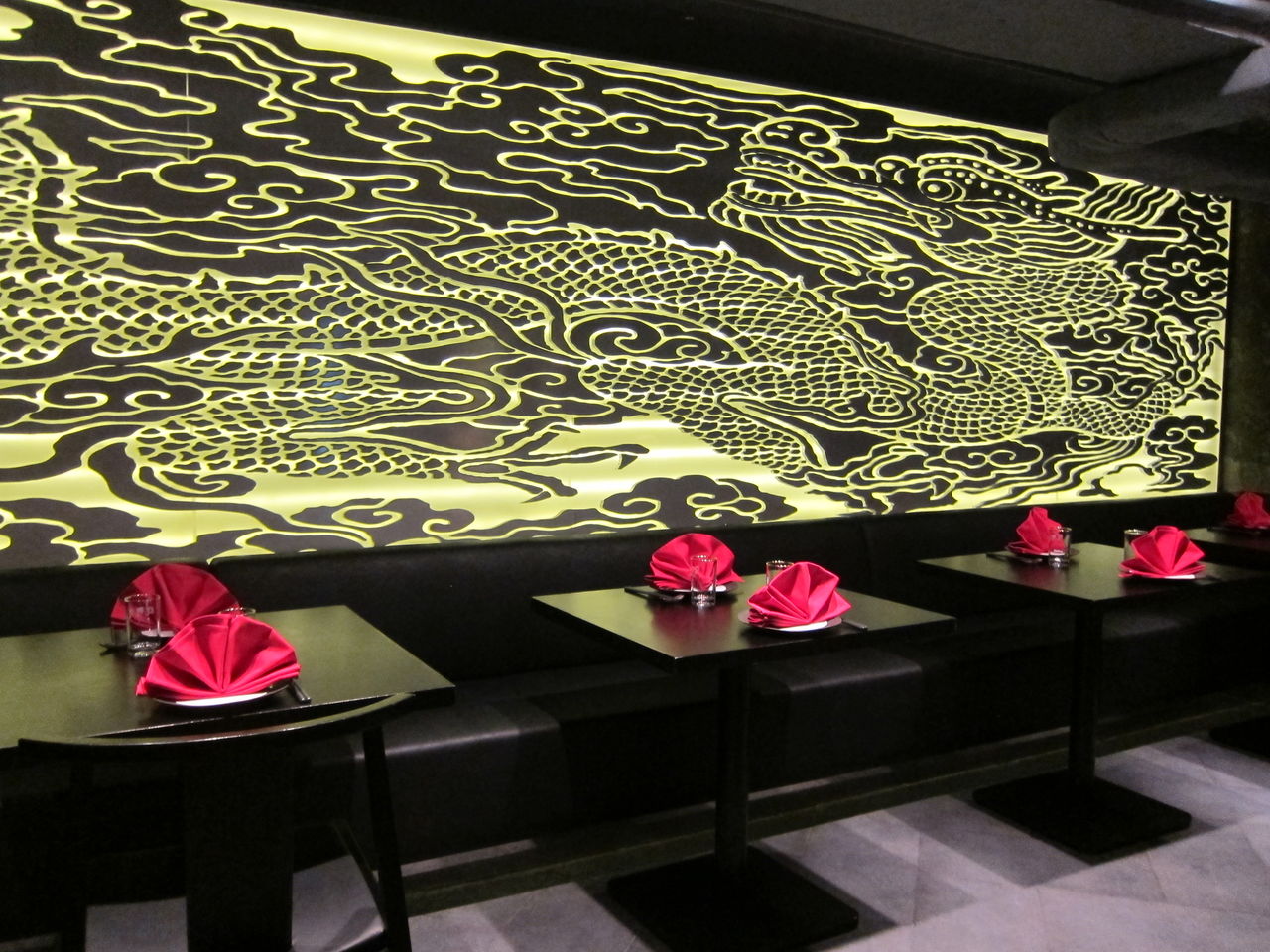 真紅のナプキンは空間の美しさをより引き立たせます。