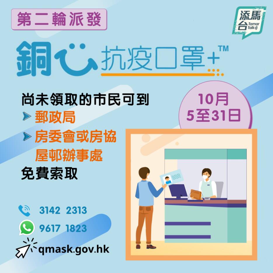 特区政府は10月4日、SNSプラットホームの専用ページ「添馬台」で2回目のマスク無料配付について発表しました。