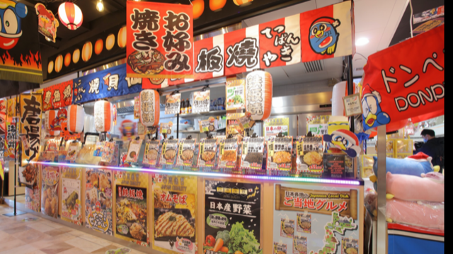 同店は日本の縁日で並ぶ「屋台」をコンセプトに、たこ焼き・寿司・おでん・焼き鳥・お好み焼き・揚げ物・どら焼き・りんごアメ・アイスクリームなど多様なメニューを展開。