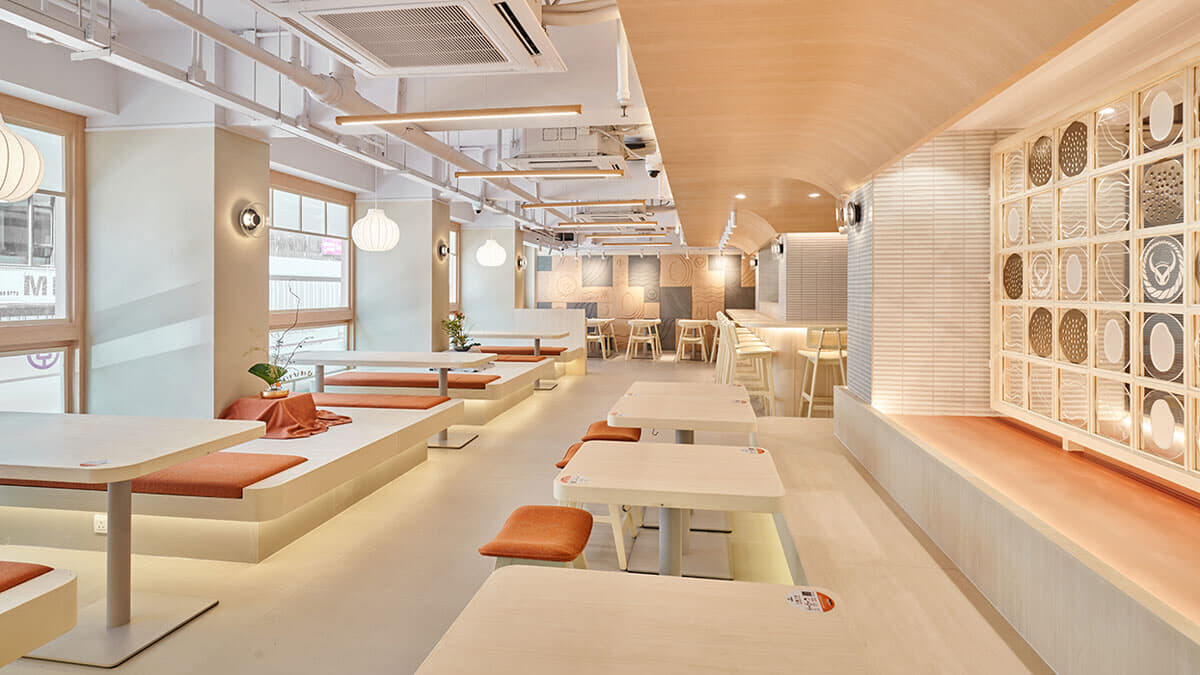 新店舗は80席で、木を主な設計材料として和風の雰囲気を漂わせ、おちついた空間に。